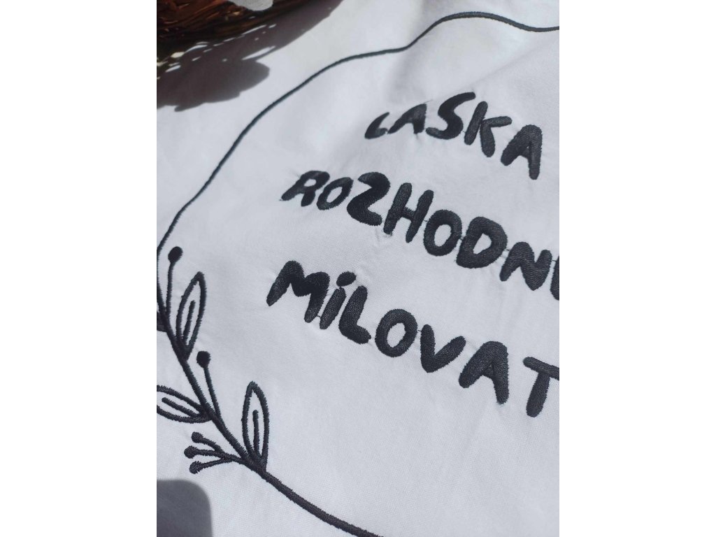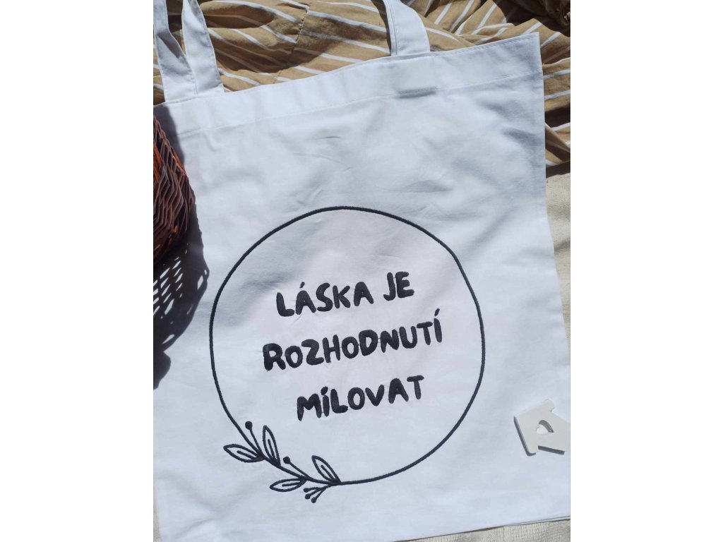 Plátěná taška s výšivkou "Láska je rozhodnuté milovat".