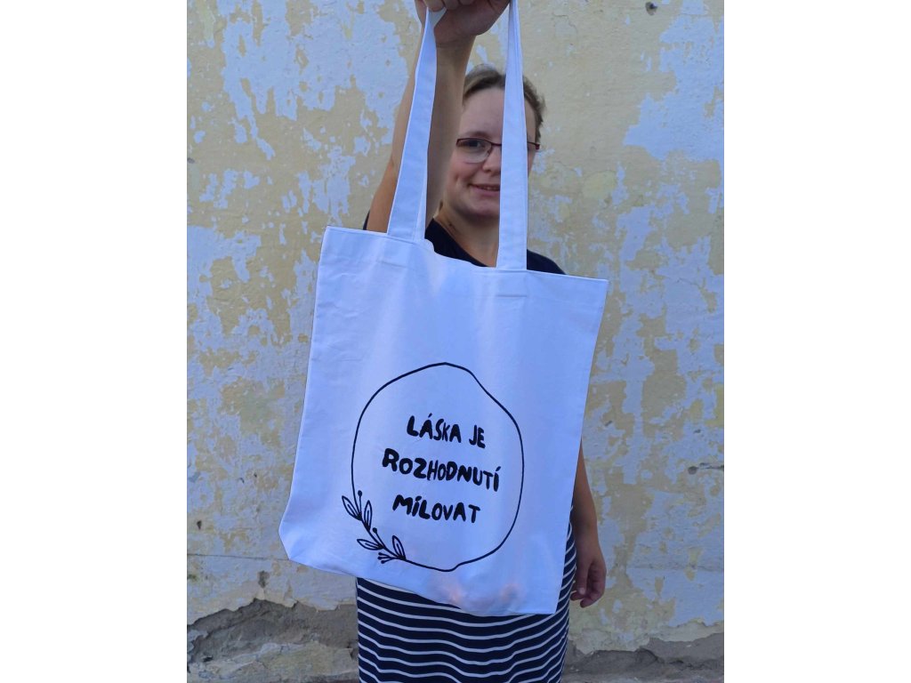 Plátěná taška s myšlenkou "Láska je rozhodnutí milovat"